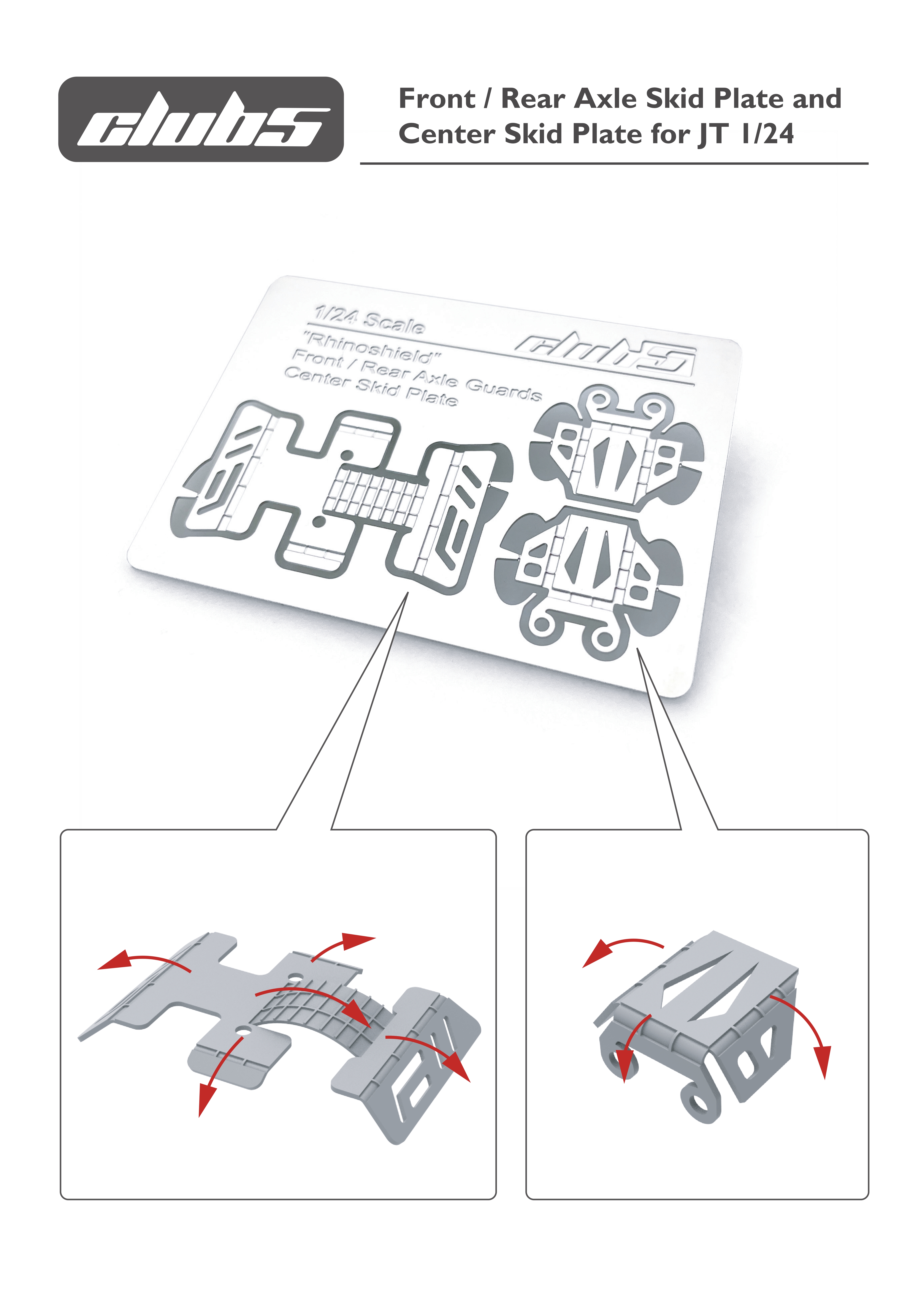 Front / Rear Axle Skid Plate and Center Skid Plate for JT 1/24