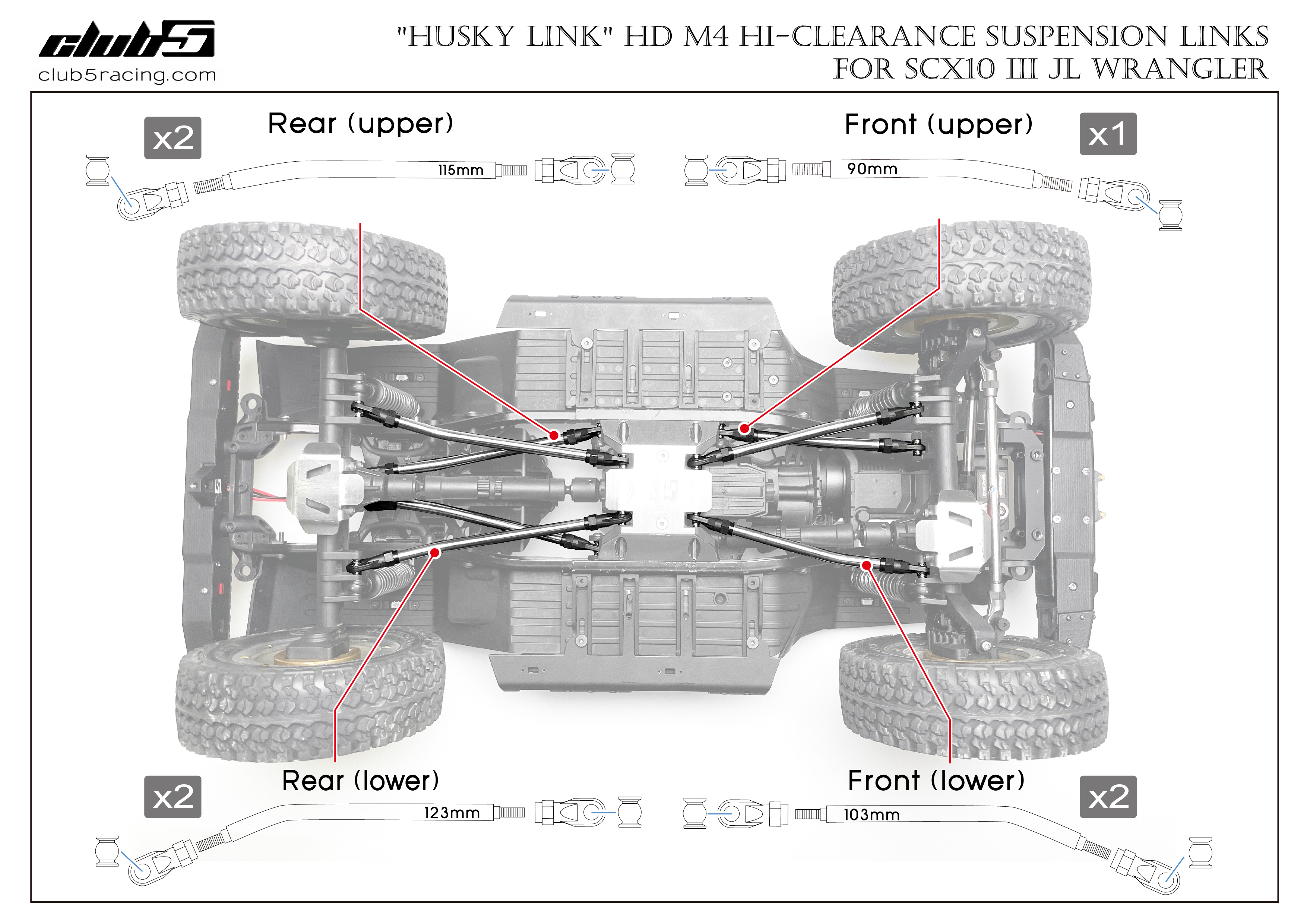SCX10III JL_"Husky Link" HD M4 Hi-Clearance Suspension Links
